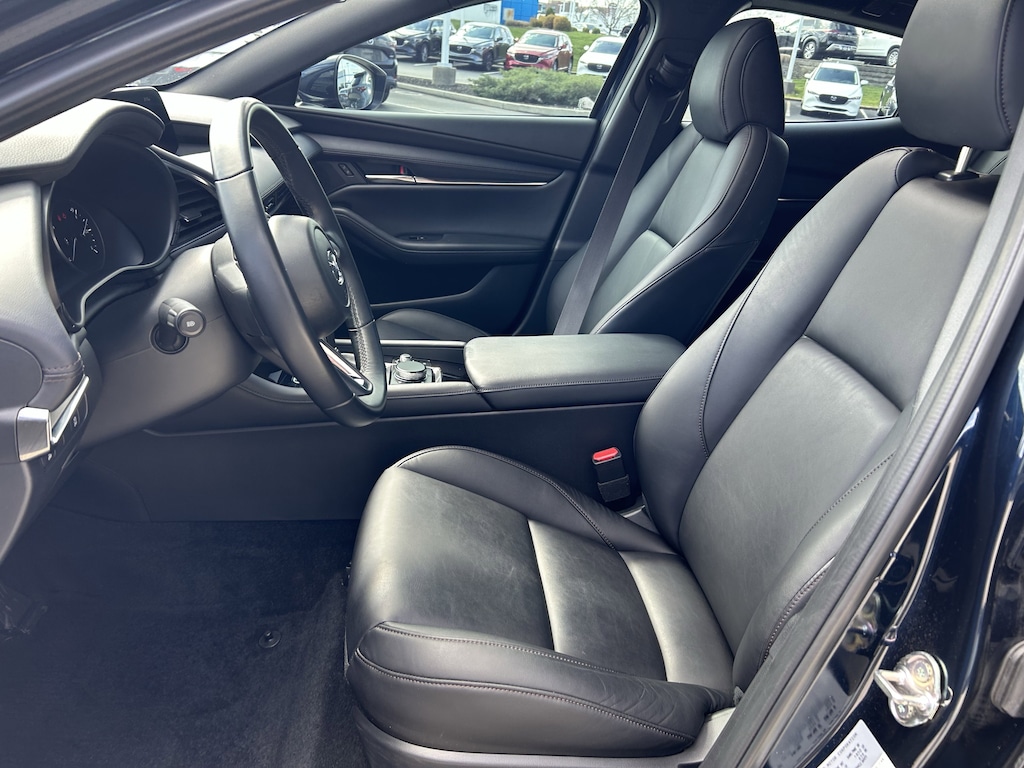 Step inside and experience the exceptional features that set this Mazda3 apart. Enjoy the convenience of Automatic Temperature Control, Front Dual Zone A/C, and Memory Seat, while the Power Driver Seat and Steering Wheel Mounted Audio Controls ensure a tailored driving experience. The Illuminated Entry and Telescoping Steering Wheel add to the refined ambiance, and the Exterior Parking Camera Rear provides added peace of mind when maneuvering.