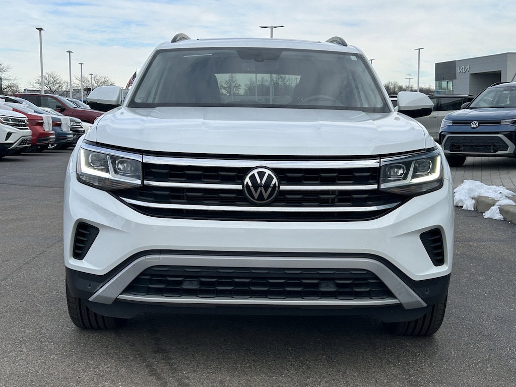 Certified. Pure White 2023 Volkswagen Atlas 3.6L V6 SE w/Technology 3.6L VR6 AWD