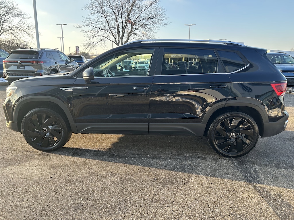 Certified. Deep Black Pearl 2024 Volkswagen Taos 1.5T SE 1.5L I4 Turbocharged DOHC 16V LEV3-SULEV30 158hp AWD