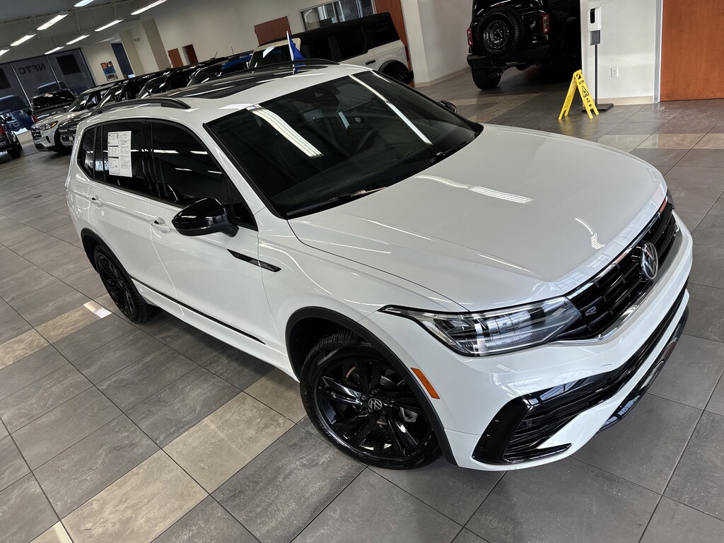 THIS VEHICLE ALSO HAS THE FOLLOWING OPTIONS AND FEATURES:Tiguan 2.0T SE R-Line Black, 4D Sport Utility, 2.0L TSI DOHC, FWD, Titan Black w/Perforated V-Tex Leatherette Seating Surfaces, 3rd row seats: bench, AM/FM radio: SiriusXM with 360L, Automatic temperature control, Electronic Stability Control, Exterior Parking Camera Rear, Fully automatic headlights, Heated Front Seats, Perforated V-Tex Leatherette Seating Surfaces, Power Liftgate, Power moonroof, Radio data system, Radio: MIB3 Composition Media AM/FM/HD, Wheels: 19" Black Painted Twin 5-Spoke Alloy, 3-Row Rubber Monster Mats Kit (Set of 5), 3.33 Axle Ratio, 4-Wheel Disc Brakes, 4-Wheel Independent Suspension, 6 Speakers, ABS brakes, Air Conditioning, Alloy wheels, Auto-dimming Rear-View mirror, Auto-Dimming Rearview Mirror w/HomeLink Connect, Brake assist, Bumperdillo Rear Bumper Protection Plate in Black, Bumpers: body-color, Compass, Delay-off headlights, Driver door bin, Driver vanity mirror, Dual front impact airbags, Dual front side impact airbags, Emergency communication system: VW Car-Net Safe & Secure 5-year, Four wheel independent suspension, Front anti-roll bar, Front Bucket Seats, Front Center Armrest, Front dual zone A/C, Front reading lights, Heated door mirrors, Heated front seats, Heavy Duty Trunk Liner w/VW CarGo Blocks, Illuminated entry, Leather Shift Knob, Leather steering wheel, Low tire pressure warning, Occupant sensing airbag, Outside temperature display, Overhead airbag, Overhead console, Panic alarm, Passenger door bin, Passenger vanity mirror, Power door mirrors, Power driver seat, Power steering, Power windows, Rain sensing wipers, Rear anti-roll bar, Rear reading lights, Rear seat center armrest, Rear window defroster, Rear window wiper, Remote keyless entry, Security system, Speed control, Speed-sensing steering, Split folding rear seat, Spoiler, Sport steering wheel, Steering wheel mounted audio controls, Tachometer, Telescoping steering wheel, Tilt steering wheel, Traction control, Trip computer, Turn signal indicator mirrors, Variably intermittent wipers, and VW Care.