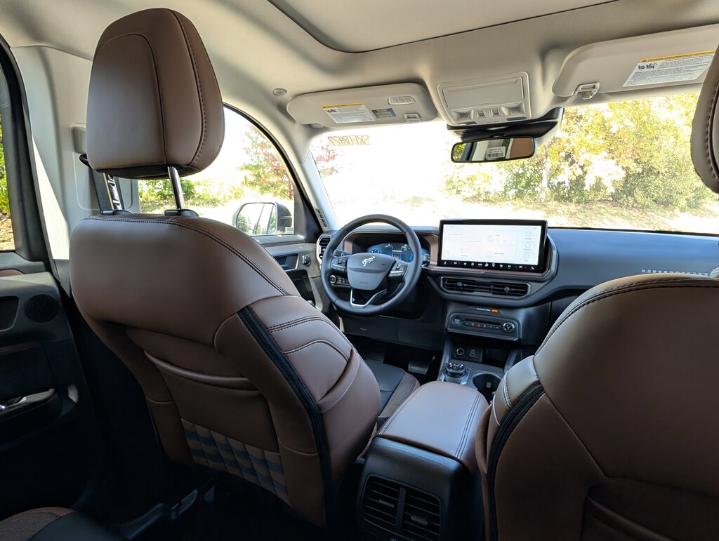 I got a 2025 Big Bend with the black diamond off road package. The steel modular front and rear in combination with bush guard gives this year model. A very aggressive off road look. With the ability to easily mount accessories and power them with the factory installed auxiliary switches. Hitch receiver seamlessly mounted into the rear steel bumper flanked by some very chunky recovery points. The upgraded aluminum rims wrapped with Continental all-terrains. It make this the most capable bronco sport yet. The interior of the 2025 has been updated with a new 13 inch touchscreen with Android Auto and apple car play. The lines of the dash flow elegantly from the new infotainment screen to the new all digital 12 inch gauge chaster. Toggling through the different modes on the gauge chaster is very intuitive, and all the displays are laid out very cleanly. Moving from gauge chaster the center storage cubby just below the infotainment screen there is a wireless charger and USB/ USB-c ports. The passenger side of that same cubby gets a handle and a matching one on the roof just in case the driver bucks a little too much. The passenger also gets a mesh storage area. That leads us to the fact this vehicle has tons of storage options all throughout. You have pockets on the sides of the front two seat big enough for the latest new phones. Very generous door storage on all four doors plus huge glove box and center console with 12 volt outlet. The back side of the center console has air vents and another 12 volt outlet plus a 110 outlet. Now getting to the cargo area it is massive for a crossover SUV. With off road package you get a cargo management system and a very nice rubber mat. Under that there is a full size tire plus scissor jack and funnel to use with the capless filler system. On the liftgate there isa pair of very bright led lights turned on with a switch in the cargo area. This feature packed vehicle has tons awesome gadgets and hidden a little homages I spend all day just talk that. At the end of the day it is car. So how does it drive. It is wonderful, the steering and pedal response is beautiful. Rides very smooth and little to no road noise going down the highway. The active cruise control and co-pilot 360 have been very handy. The car literally drives itself most of the time. There is not enough good things I could same about this car. I love it and you pick one too. You will see what I mean. - 5.0