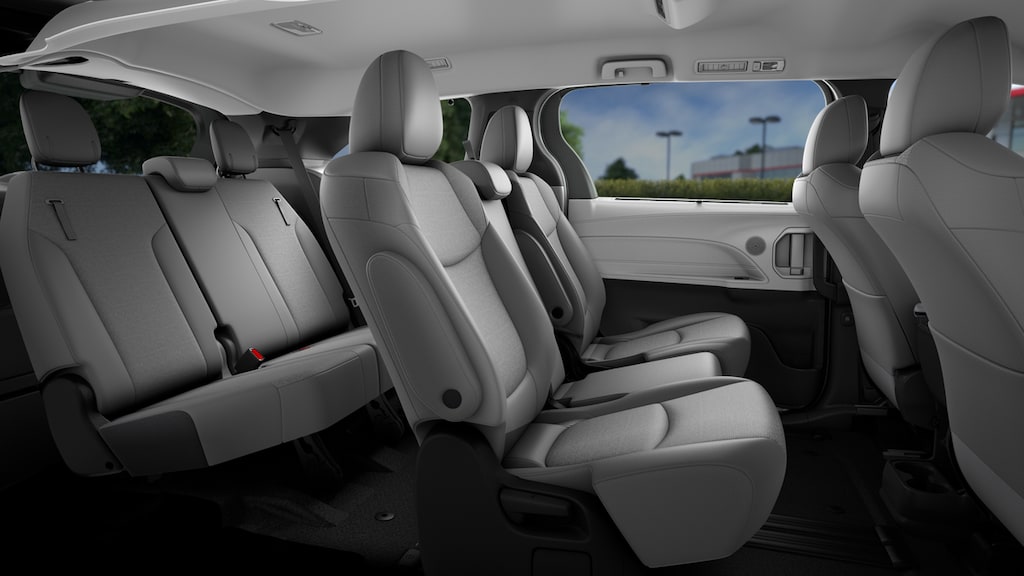 - 8-passenger seating with fabric second-row bench with stowable center seat.