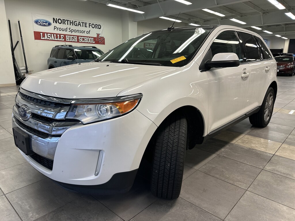 THIS VEHICLE ALSO HAS THE FOLLOWING OPTIONS AND FEATURES:Driver Entry Package (Intelligent Access w/Push Button Start, Perimeter Alarm, Power Liftgate, and Remote Start), Equipment Group 301A (AM/FM Stereo w/Single CD/MP3/Navigation, High-Intensity Discharge Headlamps, Integrated SIRIUS Travel Link, and Panoramic Vista Roof), Edge Limited, 4D Sport Utility, 3.5L V6 Ti-VCT, FWD, 20" Chrome-Clad Aluminum Wheels, Automatic temperature control, Exterior Parking Camera Rear, Leather-Trimmed Heated Bucket Seats, Navigation System, Radio: Sony AM/FM Stereo w/HD Radio/MyFord Touch, SYNC w/MyFord Touch & SYNC Services, 12 Speakers, 3.16 Axle Ratio, 4-Wheel Disc Brakes, ABS brakes, Air Conditioning, Alloy wheels, AM/FM radio: SiriusXM, Auto-dimming Rear-View mirror, Brake assist, Bumpers: body-color, CD player, Compass, Delay-off headlights, Driver door bin, Driver vanity mirror, Dual front impact airbags, Dual front side impact airbags, Electronic Stability Control, Four wheel independent suspension, Front anti-roll bar, Front Bucket Seats, Front Center Armrest w/Storage, Front dual zone A/C, Front reading lights, Fully automatic headlights, Garage door transmitter: HomeLink, Heated door mirrors, Heated front seats, Illuminated entry, Low tire pressure warning, Memory seat, Occupant sensing airbag, Outside temperature display, Overhead airbag, Overhead console, Panic alarm, Passenger door bin, Passenger vanity mirror, Power door mirrors, Power driver seat, Power passenger seat, Power steering, Power windows, Premium audio system: Sony, Radio data system, Rear anti-roll bar, Rear Parking Sensors, Rear reading lights, Rear seat center armrest, Rear window defroster, Rear window wiper, Remote keyless entry, Speed control, Speed-Sensitive Wipers, Split folding rear seat, Spoiler, Steering wheel mounted audio controls, Tachometer, Telescoping steering wheel, Tilt steering wheel, Traction control, Trip computer, and Variably intermittent wipers.
