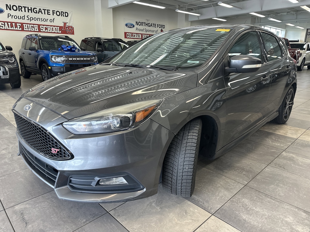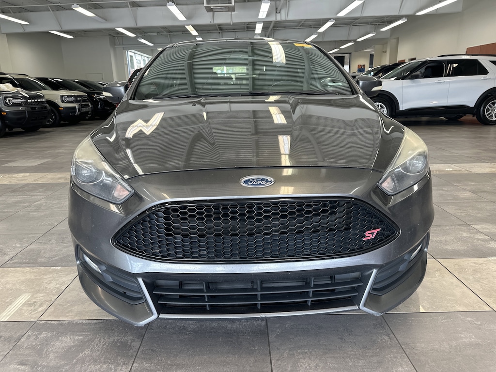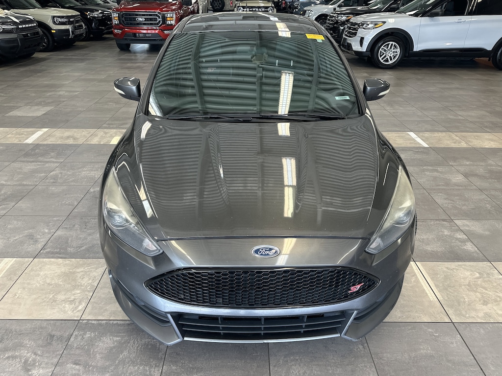 THIS VEHICLE ALSO HAS THE FOLLOWING OPTIONS AND FEATURES:Equipment Group 402A, Focus ST, 4D Hatchback, EcoBoost 2.0L I4 GTDi DOHC Turbocharged VCT, 6-Speed Manual, FWD, AM/FM/CD/MP3 w/6 Speakers, Dual-Zone Electronic Automatic Temperature Control, Electronic Stability Control, Exterior Parking Camera Rear, Heated Full Leather Recaro Sport Seats w/ST Logo, Heated Steering Wheel, HID Cornering Headlamps, Moonroof, Radio: Sony Audio System w/10 Speakers, SYNC, SYNC w/MyFord Touch Communications/Entertainment, Voice-Activated Navigation, Wheels: 18" Rado Grey Painted Aluminum, 4-Wheel Disc Brakes, 6 Speakers, ABS brakes, Air Conditioning, Alloy wheels, AM/FM radio, Brake assist, Bumpers: body-color, CD player, Compass, Delay-off headlights, Driver door bin, Driver vanity mirror, Dual front impact airbags, Dual front side impact airbags, Four wheel independent suspension, Front anti-roll bar, Front Bucket Seats, Front Center Armrest, Front fog lights, Front reading lights, Fully automatic headlights, Heated Mirrors, Illuminated entry, Knee airbag, Leather steering wheel, Low tire pressure warning, MP3 decoder, Occupant sensing airbag, Outside temperature display, Overhead airbag, Overhead Console, Panic alarm, Partial Leather Recaro Sport Seats w/ST Logo, Passenger door bin, Passenger vanity mirror, Power door mirrors, Power steering, Power windows, Radio data system, Rear anti-roll bar, Rear Armrest, Rear window defroster, Rear window wiper, Remote keyless entry, SecuriCode Keyless-Entry Keypad, Security system, Speed control, Split folding rear seat, Spoiler, Steering wheel mounted audio controls, Tachometer, Telescoping steering wheel, Tilt steering wheel, Traction control, Trip computer, Turn signal indicator mirrors, and Variably intermittent wipers.