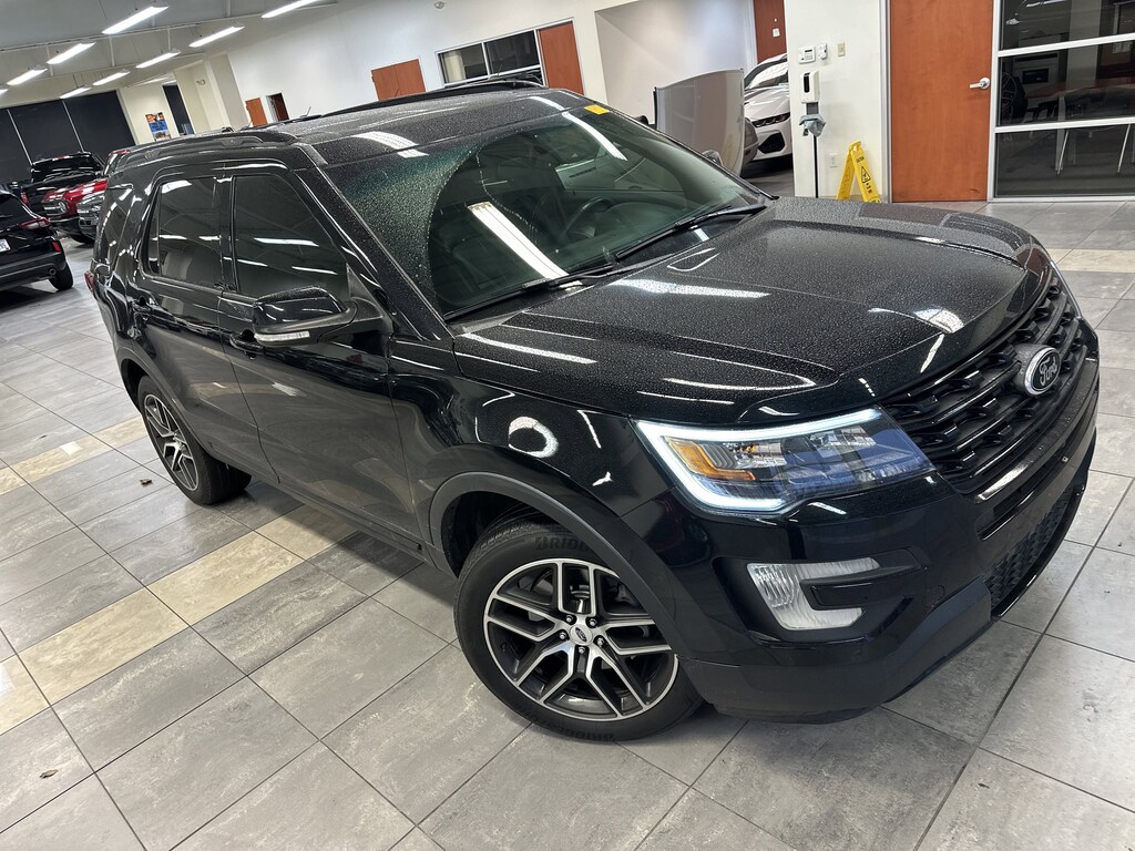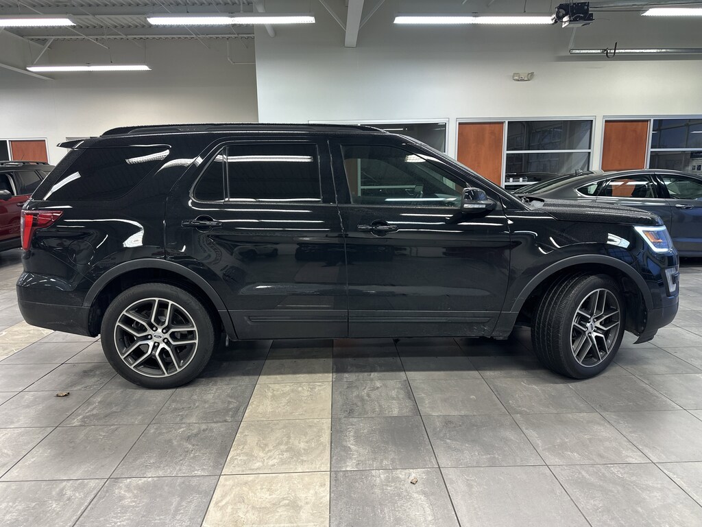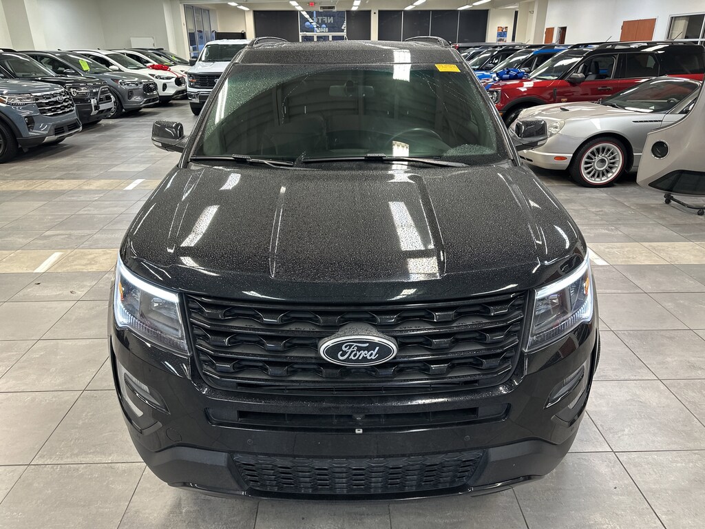 THIS VEHICLE ALSO HAS THE FOLLOWING OPTIONS AND FEATURES:BLIS Plus Inflatable Rear Safety Belts Package (Auto-Dimming Driver's Sideview Mirror, BLIS Blind Spot Information System, and Inflatable Rear Seatbelts), Equipment Group 401A (Ambient Lighting, Dual 2nd Row Smart Charging USB, Front 180 Degree Camera w/Washer, Hands-Free Liftgate, Heated Steering Wheel, Memory Feature, Perf Leather-Trimmed Heated/Cooled Bucket Seats, Power Adjustable Pedals, Power Converter 110V Outlet, Power Folding Sideview Mirrors w/Autofold, Power Tilt/Telescoping Steering Wheel, Universal Garage Door Opener, and Voice-Activated Navigation System), Explorer Sport, 4D Sport Utility, 3.5L V6, 4WD, Ebony Black w/Perf Leather-Trimmed Heated/Cooled Bucket Seats, 20" Machined Aluminum w/Painted Pockets Wheels, 3rd row seats: split-bench, Adaptive Cruise Control & Fwd Collision Warning, AM/FM radio: SiriusXM, Automatic temperature control, Exterior Parking Camera Rear, Radio: Sony Audio System w/Single-CD/MP3-Capable, SYNC w/MyFord Touch, Twin Panel Moonroof, 12 Speakers, 3.16 Axle Ratio, 4-Wheel Disc Brakes, ABS brakes, Air Conditioning, Alloy wheels, Auto-dimming Rear-View mirror, Brake assist, Bumpers: body-color, CD player, Compass, Delay-off headlights, Driver door bin, Driver vanity mirror, Dual front impact airbags, Dual front side impact airbags, Electronic Stability Control, Emergency communication system: 911 Assist, Four wheel independent suspension, Front anti-roll bar, Front Bucket Seats, Front Center Armrest, Front dual zone A/C, Front fog lights, Front reading lights, Fully automatic headlights, Heated door mirrors, Heated front seats, Illuminated entry, Knee airbag, Leather steering wheel, Low tire pressure warning, Occupant sensing airbag, Outside temperature display, Overhead airbag, Overhead console, Panic alarm, Passenger door bin, Passenger vanity mirror, Power door mirrors, Power driver seat, Power passenger seat, Power steering, Power