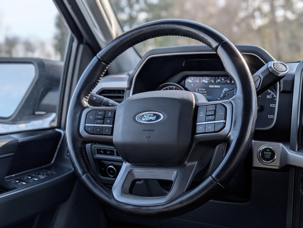 No Accident History, Non-Smoker, Local Trade, 4WD, 10-Way Power Driver & Passenger Seats, 2-Bar Style Grille w/Chrome 2 Minor Bars, 360 Degree Camera, 8" Productivity Screen in Instrument Cluster, Auto High-beam Headlights, Auto-Dimming Rear-View Mirror, Bed Utility Package, BoxLink, Bright Polished Step Bars, Chrome Door & Tailgate Handles w/Body-Color Bezel, Chrome Single-Tip Exhaust, Class IV Trailer Hitch Receiver, Connected Built-In Navigation (DISC), Dual front impact airbags, Dual front side impact airbags, Dual Zone Electronic Automatic Temperature Control, Electronic Locking w/3.55 Axle Ratio, Emergency communication system: SYNC 4 911 Assist, Equipment Group 302A High, Evasive Steering Assist, Ford Co-Pilot360 Assist 2.0 (DISC), Front fog lights, Heated Front Seats, Integrated Trailer Brake Controller, Intelligent Access w/Push Button Start, Intelligent Adaptive Cruise Control w/Stop & Go, Intersection Assist, Leather-Wrapped Steering Wheel, LED Box Lighting, LED Reflector Headlamps, LED Sideview Mirror Spotlights, Occupant sensing airbag, Onboard 400W Outlet, Overhead airbag, Panic alarm, Power Glass Heated Sideview Mirrors, Power-Sliding Rear Window, Pro Trailer Backup Assist, Radio: AM/FM SiriusXM w/360L, Rear Under-Seat Storage, Remote keyless entry, Remote Start System w/Remote Tailgate Release, SecuriCode Drivers Side Keyless-Entry Keypad, Security system, Speed Sign Recognition, Steering wheel mounted audio controls, SYNC 4 w/Enhanced Voice Recognition, Tailgate Step w/Tailgate Work Surface, Tow Technology Package, Twin Panel Moonroof, Variably intermittent wipers, Wheels: 18" Chrome-Like PVD, XLT Chrome Appearance Package, Zone Lighting.