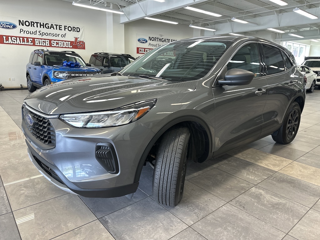 THIS VEHICLE ALSO HAS THE FOLLOWING OPTIONS AND FEATURES:Equipment Group 200A, Tech Pack #1 (Connected Built-In Navigation, Ford Co-Pilot360 Assist+, Intelligent Adaptive Cruise Control w/Stop-and-Go, Rear Parking Sensor, Rear-View Camera, Speed Sign Recognition, and SYNC 4 w/Enhanced Voice Recognition), Escape Active, 4D Sport Utility, AWD, AM/FM radio: SiriusXM, Auto High-beam Headlights, Automatic temperature control, Electronic Stability Control, Exterior Parking Camera Rear, Power Liftgate, Wheels: 17" Shadow Silver-Painted Aluminum, 3.81 Axle Ratio, 4-Wheel Disc Brakes, 6 Speakers, ABS brakes, Air Conditioning, Alloy wheels, AM/FM Stereo, Brake assist, Bumpers: body-color, Compass, Delay-off headlights, Driver door bin, Driver vanity mirror, Dual front impact airbags, Dual front side impact airbags, Emergency communication system: SYNC 4 911 Assist, First Aid Kit, FordPass Connect, Four wheel independent suspension, Front & Rear Floor Liners w/o Carpet Mats, Front anti-roll bar, Front Bucket Seats, Front Center Armrest, Front dual zone A/C, Front reading lights, Fully automatic headlights, Heated door mirrors, Heated front seats, Heated steering wheel, Illuminated entry, Knee airbag, Low tire pressure warning, Occupant sensing airbag, Outside temperature display, Overhead airbag, Overhead console, Panic alarm, Passenger door bin, Passenger vanity mirror, Power door mirrors, Power driver seat, Power steering, Power windows, Radio data system, Rear anti-roll bar, Rear reading lights, Rear seat center armrest, Rear window defroster, Rear window wiper, Remote keyless entry, Speed control, Speed-sensing steering, Speed-Sensitive Wipers, Split folding rear seat, Spoiler, Steering wheel mounted audio controls, SYNC 4, Tachometer, Telescoping steering wheel, Tilt steering wheel, Traction control, Trip computer, Unique Cloth Front Bucket Seats, and Variably intermittent wipers.