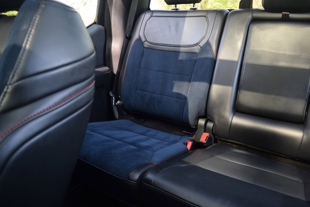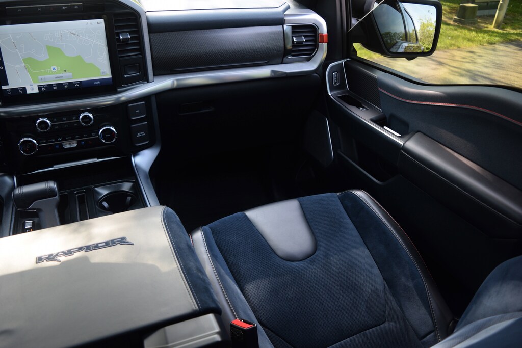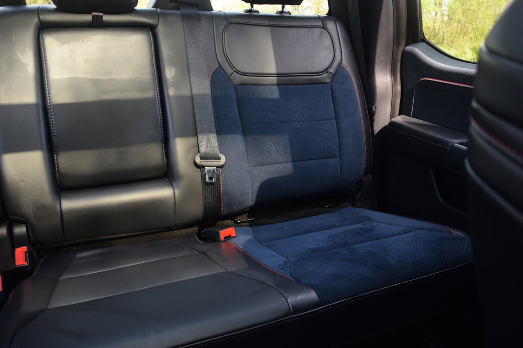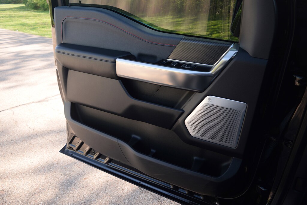 Adaptive suspension, Blue Interior Package, Fully automatic headlights, GVWR: 7,300 lbs Payload Package, Heated front seats, Heated rear seats, Memory seat, Moonroof & Tailgate, Navigation system: Connected Navigation, Pedal memory, Power Tailgate, Radio: B&O Unleashed Sound System by Bang & Olufsen, Recaro Unique Blue Accent 40/Console/40 Front Seats, SYNC 4 w/Enhanced Voice Recognition, Twin Panel Moonroof, Ventilated front seats.