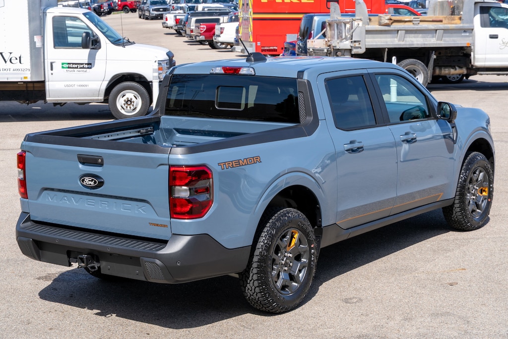 The Maverick Tremor's rugged exterior, complete with the Azure Gray Metallic Tri-Coat finish, exudes a bold and commanding presence. Step inside the cabin, and you'll be greeted by a wealth of premium features, including heated front seats, a heated steering wheel, and a state-of-the-art SYNC 4 infotainment system with enhanced voice recognition and connected navigation.