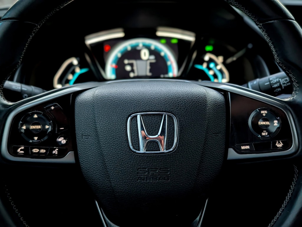 Sunroof/Moonroof, Rear View Camera, Touch Screen, Handsfree Calling/Bluetooth, USB/AUX Ports, Non-Smoker, Satellite Radio, Heated Leather Seats, Local Trade, Black w/Leather-Trimmed Seating Surfaces, 17" Alloy Wheels, Adaptive Cruise Control: Adaptive Cruise Control (ACC) with Low-Speed Follow, Automatic temperature control, Dual front side impact airbags, Emergency communication system: HondaLink, Exterior Parking Camera Rear, Forward collision: Collision Mitigation Braking System (CMBS) + FCW mitigation, Front fog lights, Heated front seats, Lane departure: Lane Keeping Assist System (LKAS) active, Low tire pressure warning, Power moonroof, Radio: 180-Watt HD Audio System, Security system, Speed control, Split folding rear seat, Steering wheel mounted audio controls, Telescoping steering wheel, Tilt steering wheel.