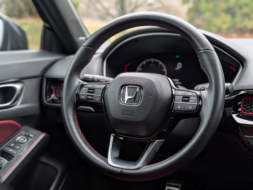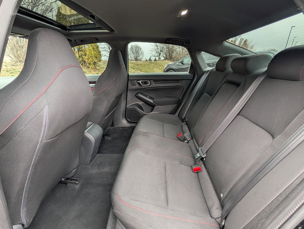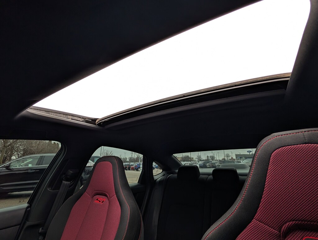 Indulge in the Civic Si's impressive array of premium features, including a Bose Premium Sound System, Automatic Temperature Control, Blind Spot Information (BSI) System, and a Collision Mitigation Braking System (CMBS) with Forward Collision Warning. The sleek 18" Matte Black Alloy wheels and power moonroof add to the vehicle's striking aesthetic, while the split-folding rear seat and ample cargo space ensure versatility and practicality.