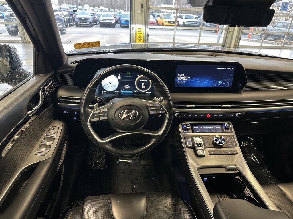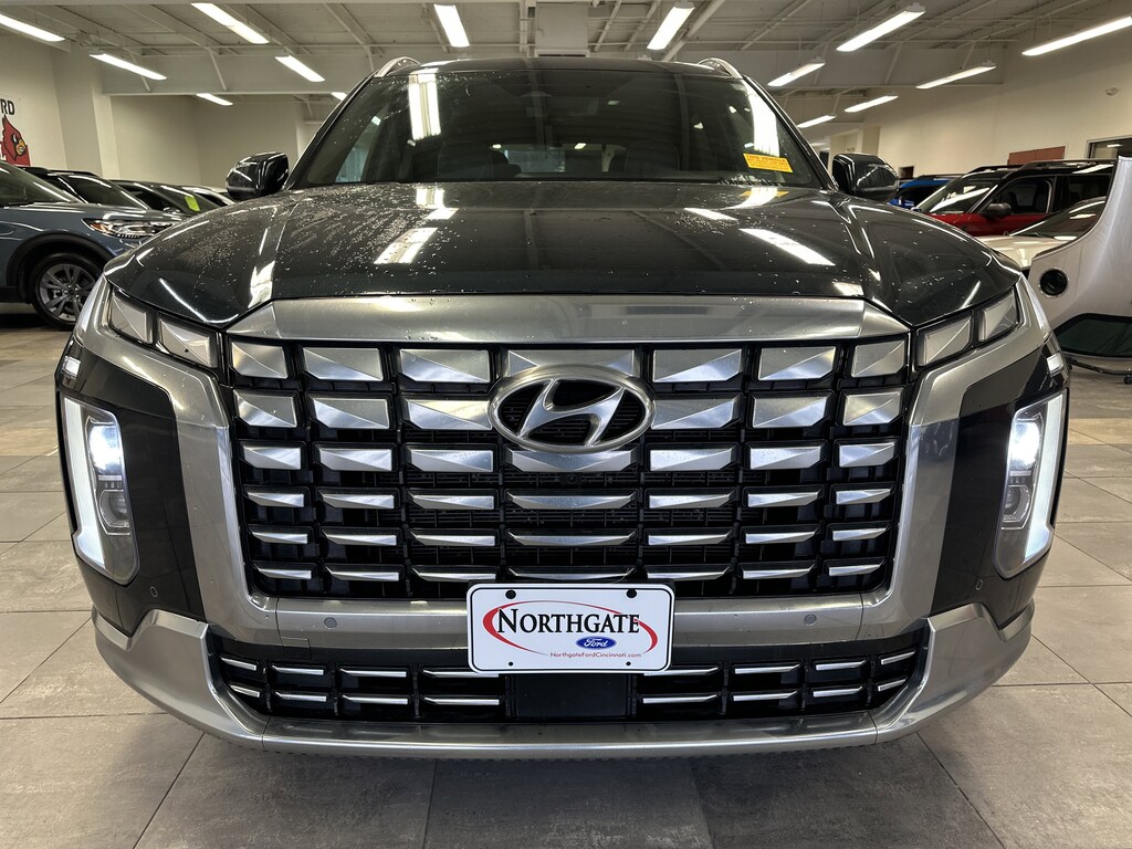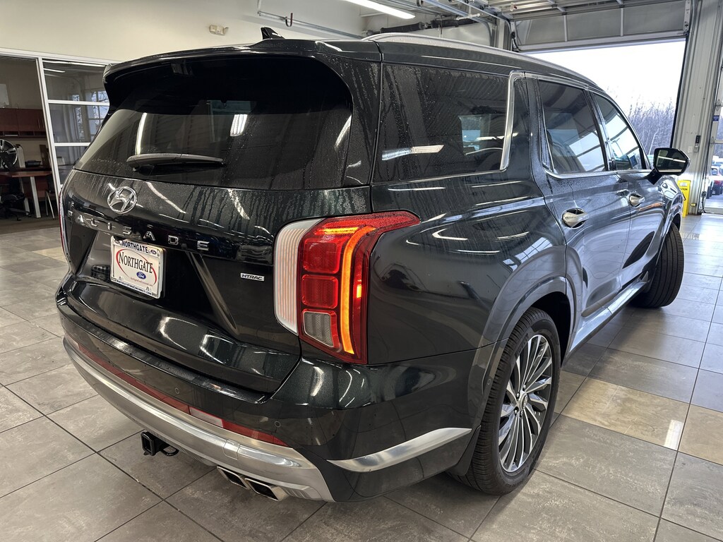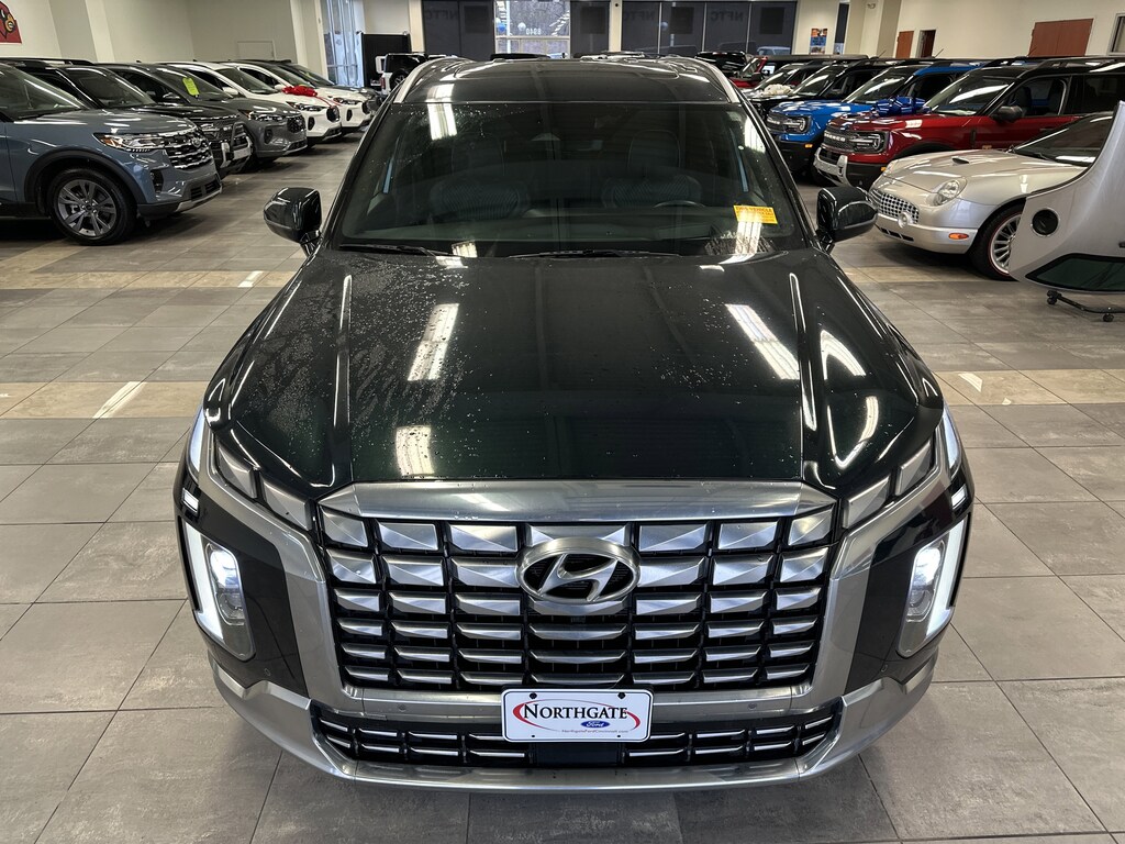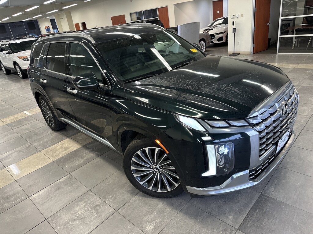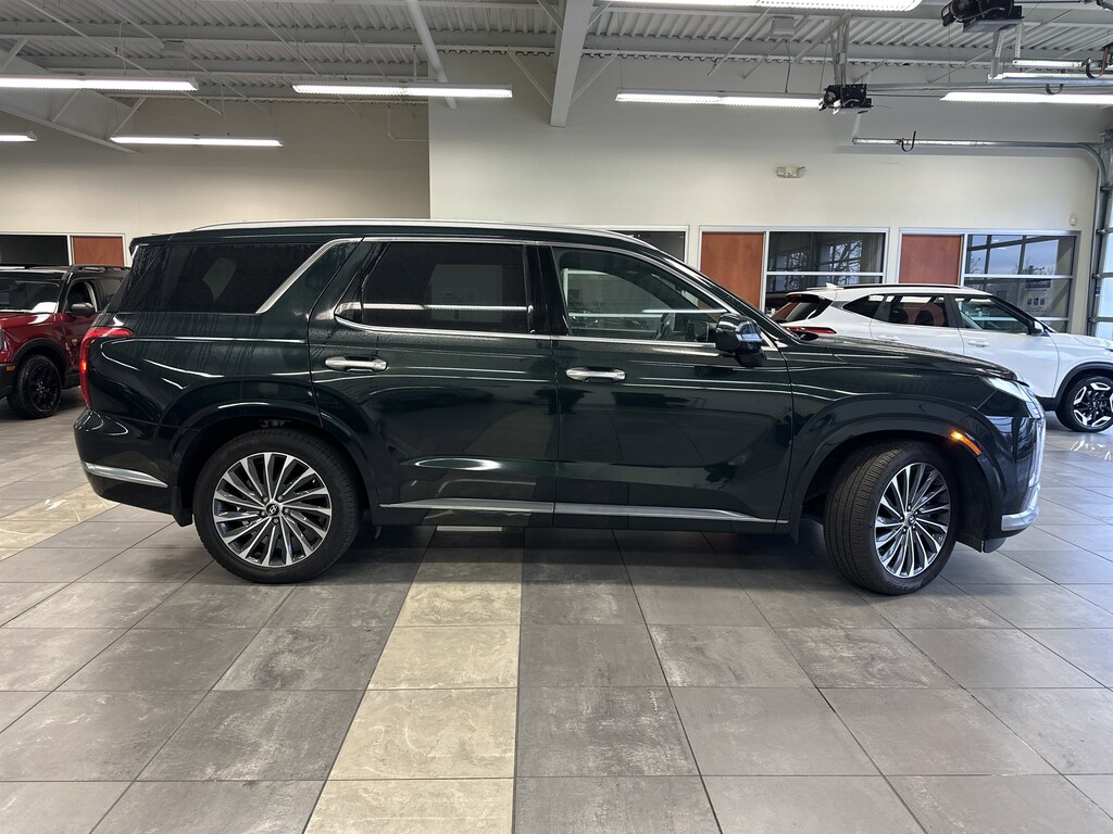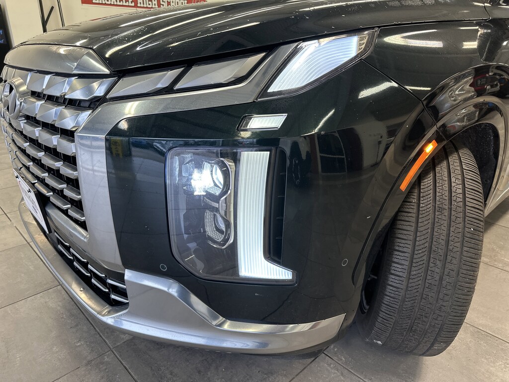 THIS VEHICLE ALSO HAS THE FOLLOWING OPTIONS AND FEATURES:Option Group 01, Palisade Calligraphy, 4D Sport Utility, AWD, Black w/Premium Nappa Leather Seat Trim, Auto High-beam Headlights, Automatic temperature control, harman/kardon® Speakers, Heads-Up Display, Navigation System, Power Liftgate, Power moonroof, Radio: AM/FM/MP3 Premium Audio System, Rain sensing wipers, Rear audio controls, Wheels: 20" x 7.5J Calligraphy Exclusive Alloy, 12 Speakers, 3.648 Axle Ratio, 3rd row seats: split-bench, 4-Wheel Disc Brakes, ABS brakes, Air Conditioning, Alloy wheels, AM/FM radio: SiriusXM, Apple CarPlay & Android Auto, Auto-dimming door mirrors, Auto-dimming Rear-View mirror, Auto-leveling suspension, Brake assist, Bumpers: body-color, Cargo Cover/Screen, Carpeted Floor Mats, Compass, Delay-off headlights, Driver door bin, Driver vanity mirror, Dual front impact airbags, Dual front side impact airbags, Electronic Stability Control, Emergency communication system: Blue Link Connected Car Service (3-year complimentary subscription), Exterior Parking Camera Rear, Four wheel independent suspension, Front anti-roll bar, Front Bucket Seats, Front Center Armrest, Front dual zone A/C, Front reading lights, Fully automatic headlights, Garage door transmitter: HomeLink, Heated & Ventilated Front Bucket Seats, Heated door mirrors, Heated front seats, Heated rear seats, Heated steering wheel, Illuminated entry, Knee airbag, Low tire pressure warning, Memory seat, Occupant sensing airbag, Outside temperature display, Overhead airbag, Overhead console, Panic alarm, Passenger door bin, Passenger vanity mirror, Power door mirrors, Power driver seat, Power passenger seat, Power steering, Power windows, Premium Nappa Leather Seat Trim, Radio data system, Rear air conditioning, Rear anti-roll bar, Rear reading lights, Rear side impact airbag, Rear window defroster, Rear window wiper, Reclining 3rd row seat, Remote keyless entry, Security system, Speed control, Speed-sensing steering, Split folding rear seat, Spoiler, Steering wheel mounted audio controls, Tachometer, Telescoping steering wheel, Tilt steering wheel, Traction control, Trip computer, Turn signal indicator mirrors, Variably intermittent wipers, Ventilated front seats, and Ventilated rear seats.