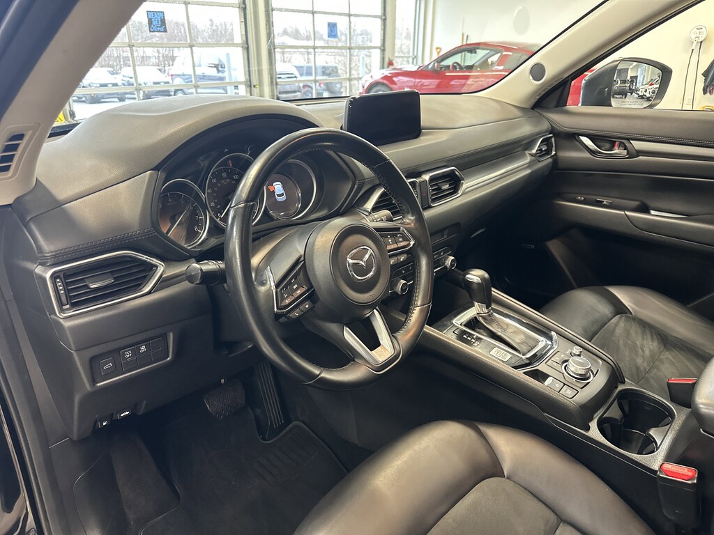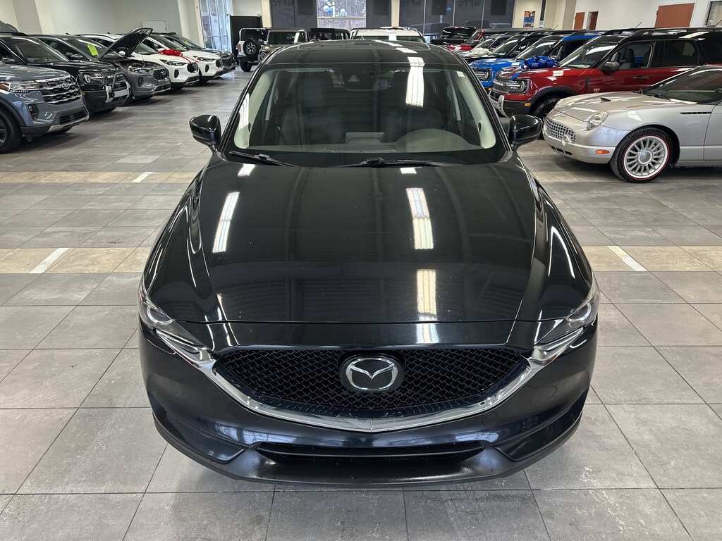 THIS VEHICLE ALSO HAS THE FOLLOWING OPTIONS AND FEATURES:Touring Preferred Equipment Package (Auto Dimming Rearview Mirror w/HomeLink, Bose 10-Speaker Audio Sound System, Power Rear Liftgate, and Power Sliding-Glass Moonroof w/Interior Sunshade), CX-5 Touring, 4D Sport Utility, AWD, Black w/Leatherette Seat Trim, Auto High-beam Headlights, Automatic temperature control, Exterior Parking Camera Rear, Heated Front Sport Seats, Lane Departure Warning System, Radio: AM/FM/HD Audio System, Rain sensing wipers, Wheels: 17" x 7J Gray Metallic Alloy, 4-Wheel Disc Brakes, 4.624 Axle Ratio, 6 Speakers, ABS brakes, Air Conditioning, Alloy wheels, AM/FM radio, AppLink/Apple CarPlay and Android Auto, Brake assist, Bumpers: body-color, Delay-off headlights, Driver door bin, Driver vanity mirror, Dual front impact airbags, Dual front side impact airbags, Electronic Stability Control, Emergency communication system, Four wheel independent suspension, Front anti-roll bar, Front Bucket Seats, Front Center Armrest, Front dual zone A/C, Front reading lights, Fully automatic headlights, Heated front seats, Illuminated entry, Leather Shift Knob, Leatherette Seat Trim, Low tire pressure warning, Occupant sensing airbag, Outside temperature display, Overhead airbag, Overhead console, Panic alarm, Passenger door bin, Passenger vanity mirror, Power door mirrors, Power driver seat, Power steering, Power windows, Radio data system, Rear anti-roll bar, Rear reading lights, Rear seat center armrest, Rear window defroster, Rear window wiper, Remote keyless entry, Speed control, Speed-sensing steering, Split folding rear seat, Spoiler, Steering wheel mounted audio controls, Tachometer, Telescoping steering wheel, Tilt steering wheel, Traction control, Trip computer, Turn signal indicator mirrors, and Variably intermittent wipers.