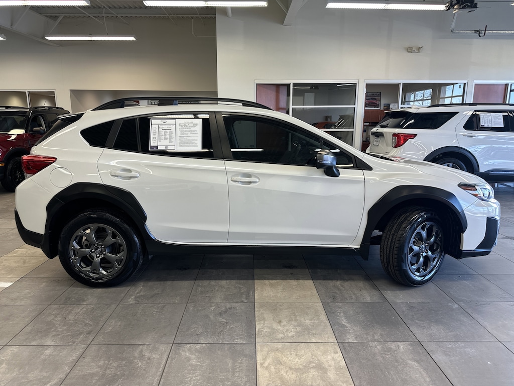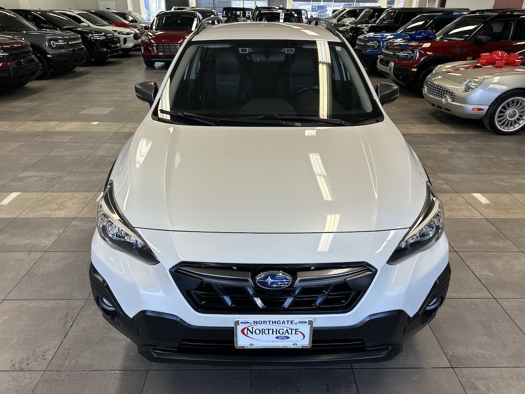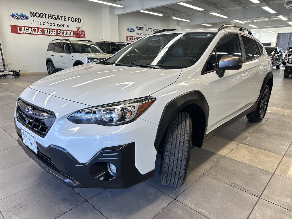 THIS VEHICLE ALSO HAS THE FOLLOWING OPTIONS AND FEATURES:Standard Model, Crosstrek Sport, 4D Sport Utility, AWD, Gray w/Yellow Stitching w/StarTex Upholstery, Automatic temperature control, Exterior Parking Camera Rear, Heated Front Bucket Seats, Radio: Subaru STARLINK 6.5" Multimedia Plus System, STARLINK/Apple CarPlay/Android Auto, Subaru STARLINK Smartphone Integration, Wheels: 17" x 7.0J Alloy Dark Gray Finish, 3.70 Axle Ratio, 4-Wheel Disc Brakes, 6 Speakers, ABS brakes, Air Conditioning, Alloy wheels, AM/FM radio: SiriusXM, Anti-whiplash front head restraints, Auto-Dimming Mirror w/Compass & HomeLink, Brake assist, Bumpers: body-color, CD player, Driver door bin, Driver vanity mirror, Dual front impact airbags, Dual front side impact airbags, Electronic Stability Control, Emergency communication system: STARLINK Safety and Security (Subscription Required), Four wheel independent suspension, Front anti-roll bar, Front Bucket Seats, Front Center Armrest, Front fog lights, Front reading lights, Fully automatic headlights, Heated door mirrors, Heated front seats, Illuminated entry, Knee airbag, Leather Shift Knob, Low tire pressure warning, Occupant sensing airbag, Outside temperature display, Overhead airbag, Overhead console, Panic alarm, Passenger door bin, Passenger vanity mirror, Power door mirrors, Power steering, Power windows, Radio data system, Rear anti-roll bar, Rear Bumper Cover, Rear Seatback Protector, Rear window defroster, Rear window wiper, Remote keyless entry, Security system, Speed control, Speed-sensing steering, Splash Guards, Split folding rear seat, Spoiler, StarTex Upholstery, Steering wheel mounted audio controls, Tachometer, Telescoping steering wheel, Tilt steering wheel, Traction control, Trip computer, Turn signal indicator mirrors, and Variably intermittent wipers.